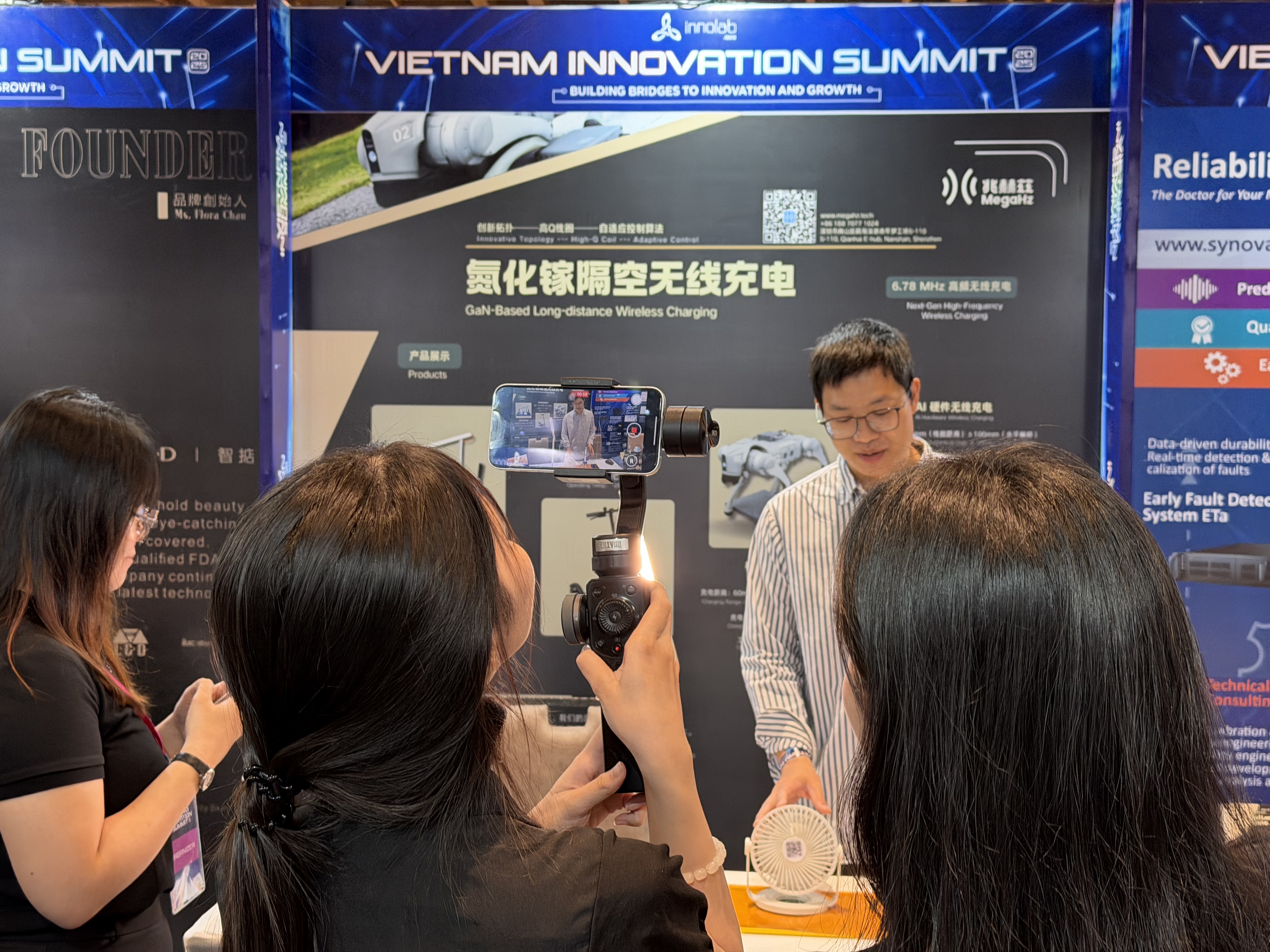 - 我们突破了高频电力传输中的核心技术瓶颈——复杂的电路设计与高难度控制算法,带来了基于第三代半导体材料氮化镓(GaN)的 6.78 MHz 磁共振无线充电技术,实现了远距离无线充电,无需对准,随放随充,一对多充电。